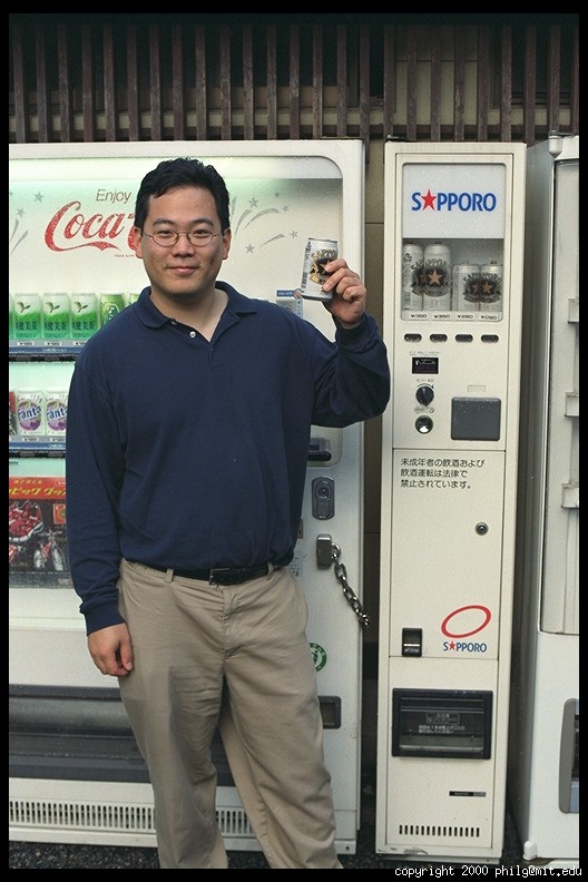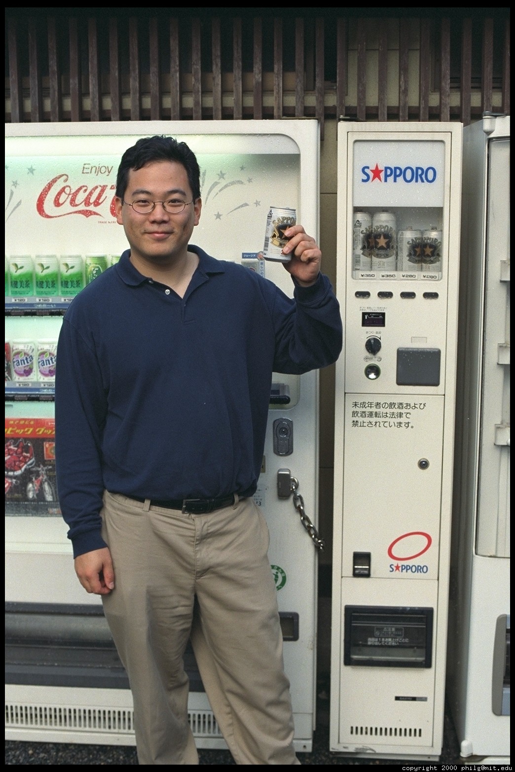 Jin Choi and a beer vending machine. Time: 0730. Kyoto