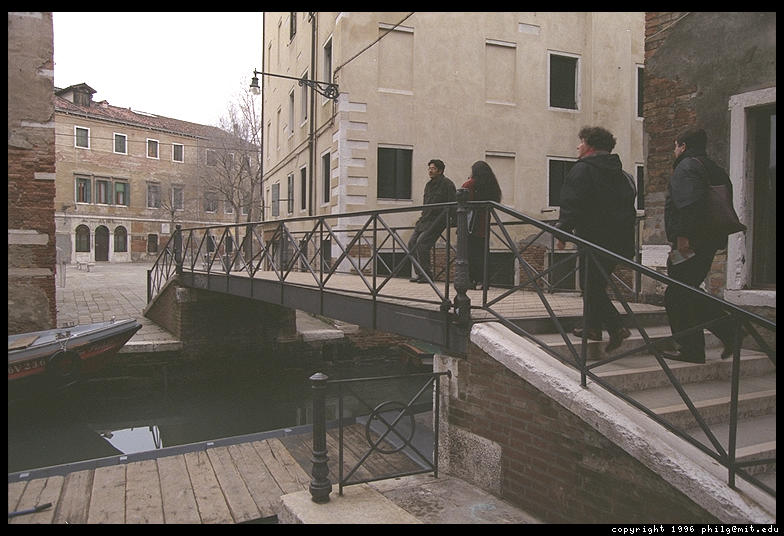 A bridge leading between old and new parts of the Jewish ghetto in Venice. Note that the additions were made in 1541 and 1633, hence "new" is a relative term.