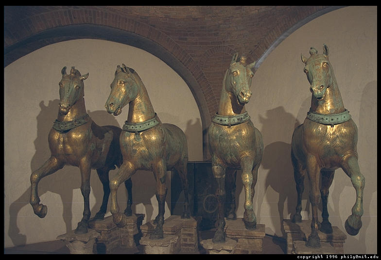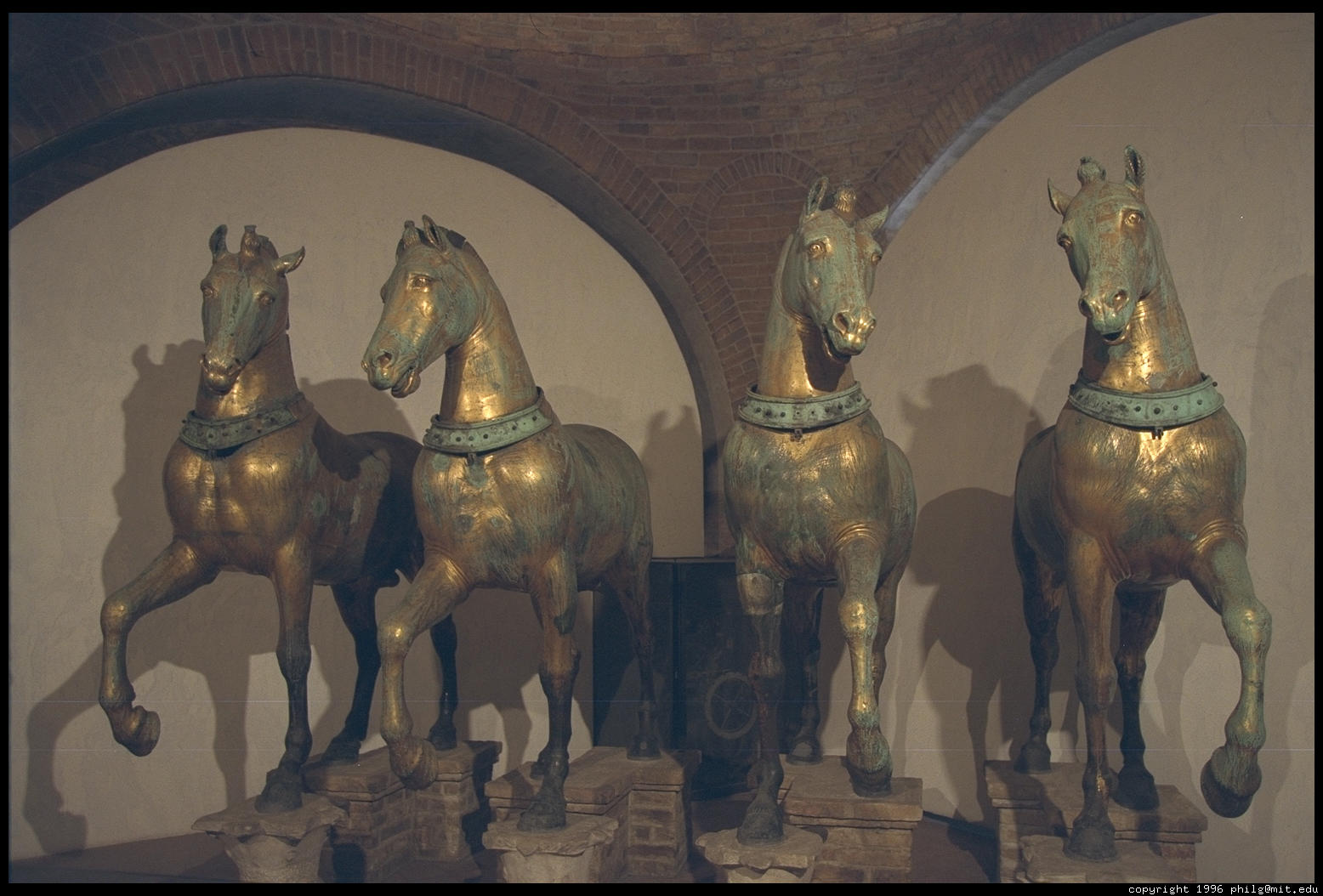 The original four horses adorning St. Mark's Cathedral (replicas are installed outside today)