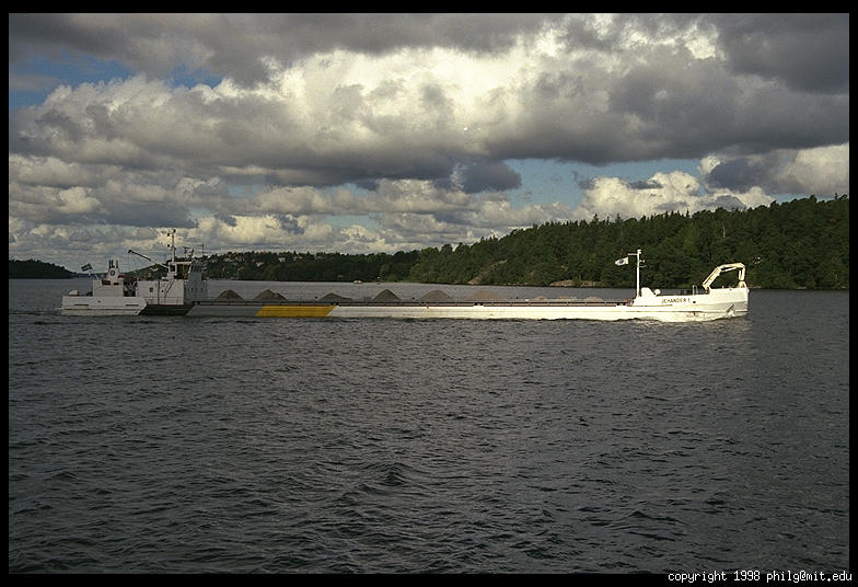 A barge, view from the steamboat Prins Carl Philip outside Stockholm
