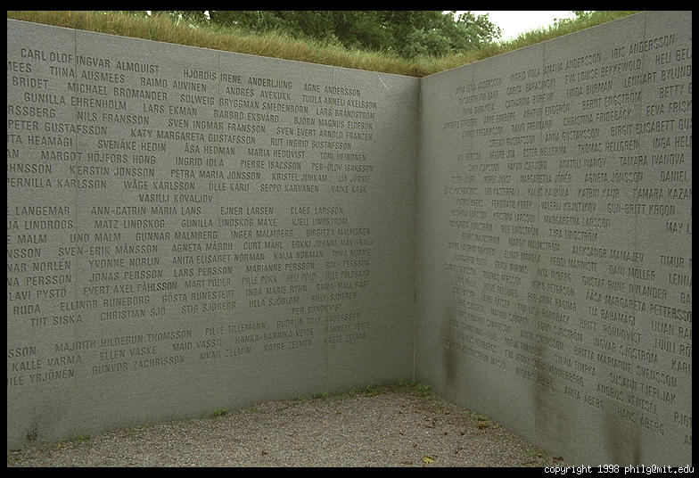 Memorial on Djurgarden, next to Vasamuseet, to the 960 people who died on September 28, 1994 when the Estonia ferry boat sank. Stockholm, Sweden
