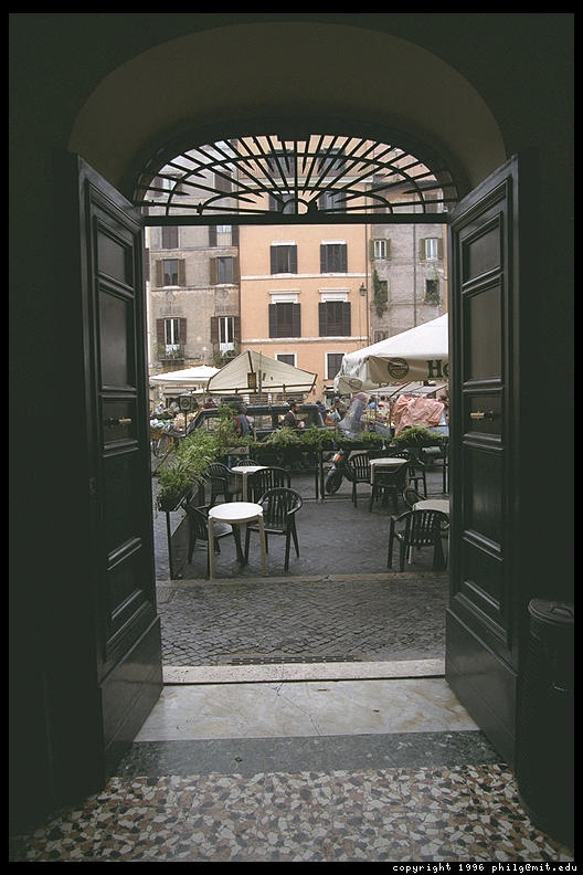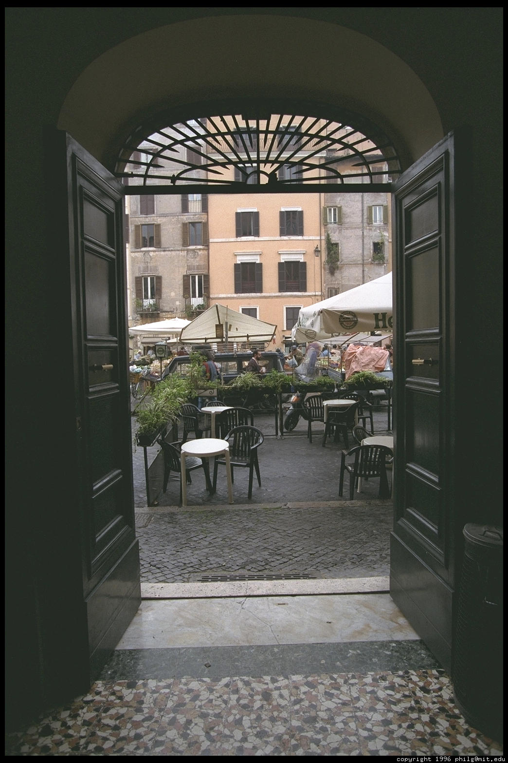 Looking out into the open-air market in the Campo de Fiori (Rome)
