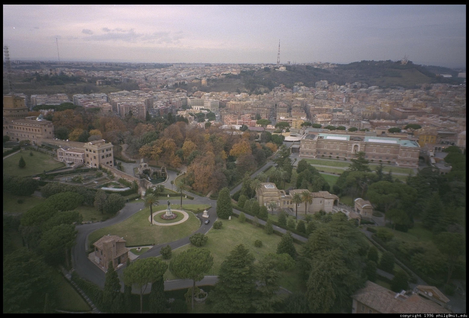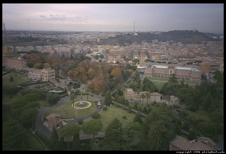 The backyard of the Vatican, as seen from atop St. Peter's. Tourists aren't permitted to wander among these gardens and small buildings, just the Pope and cardinals.