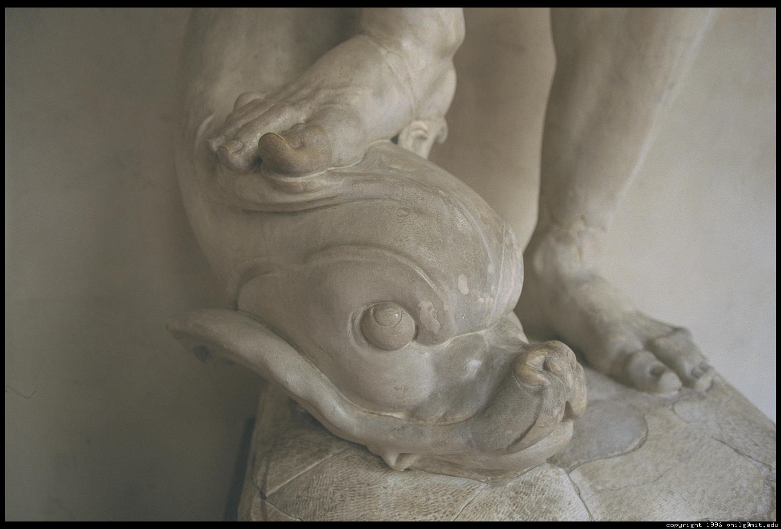 Stepping on a fish's head is one way to dominate Nature (inside Florence's Bargello)