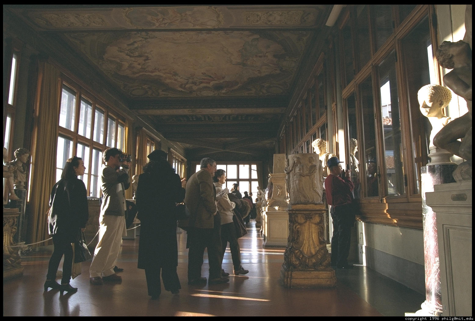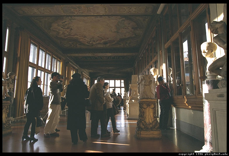 Halfway through the Uffizi, one comes out into a sunny gallery with a view over the Arno