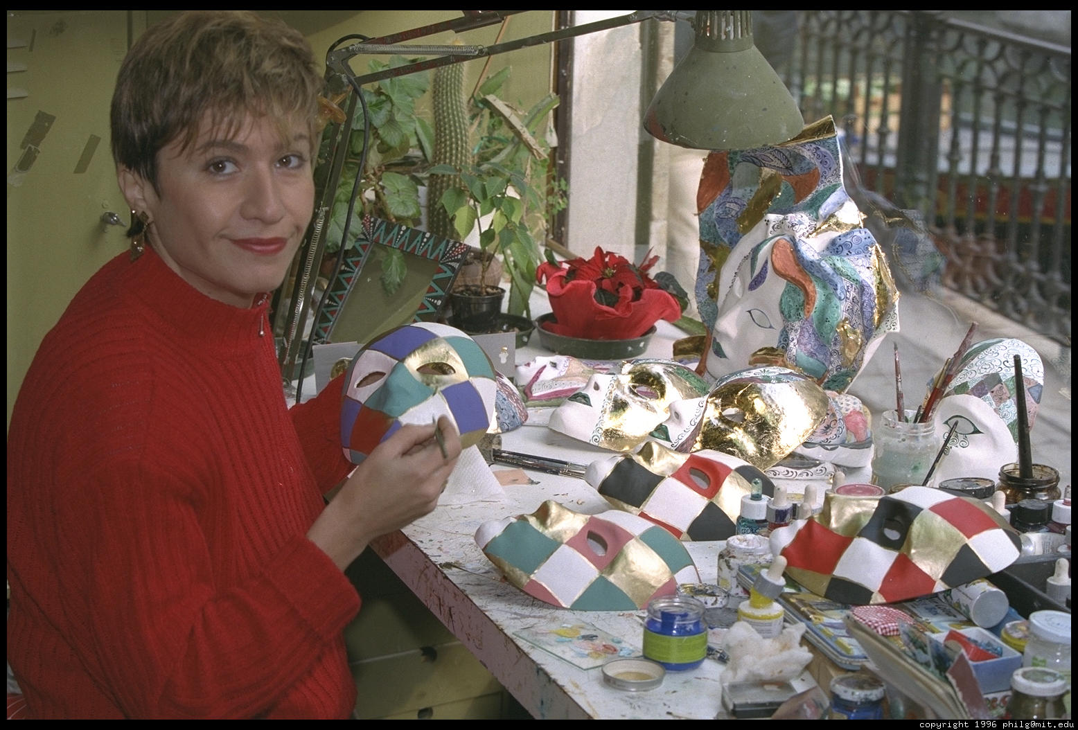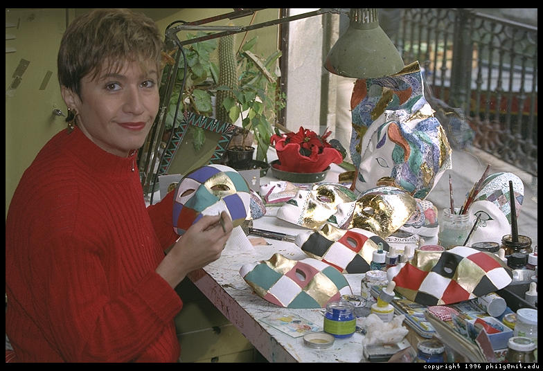 An artist painting a carnival mask