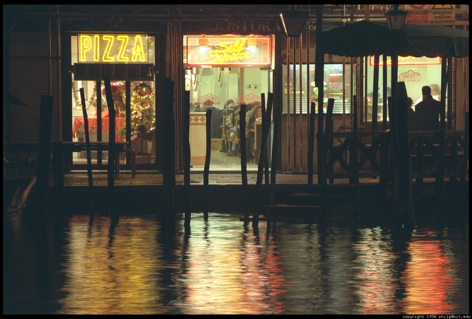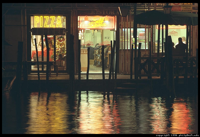 A pizza shop on the Grand Canal, near the Rialto Bridge.