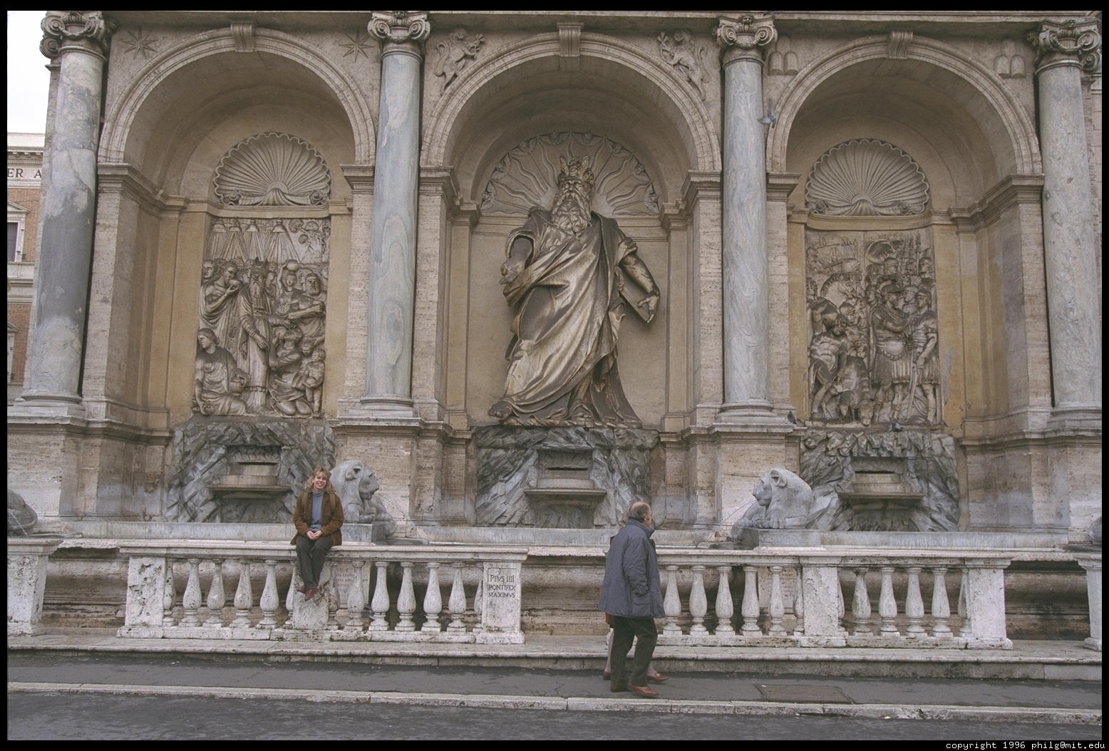 Fontana dell'Acqua Felice ("Moses Fountain"), in Rome's Piazza San Bernardo. Moses strikes water from the rock to celebrate the completion of an aqueduct in 1586.