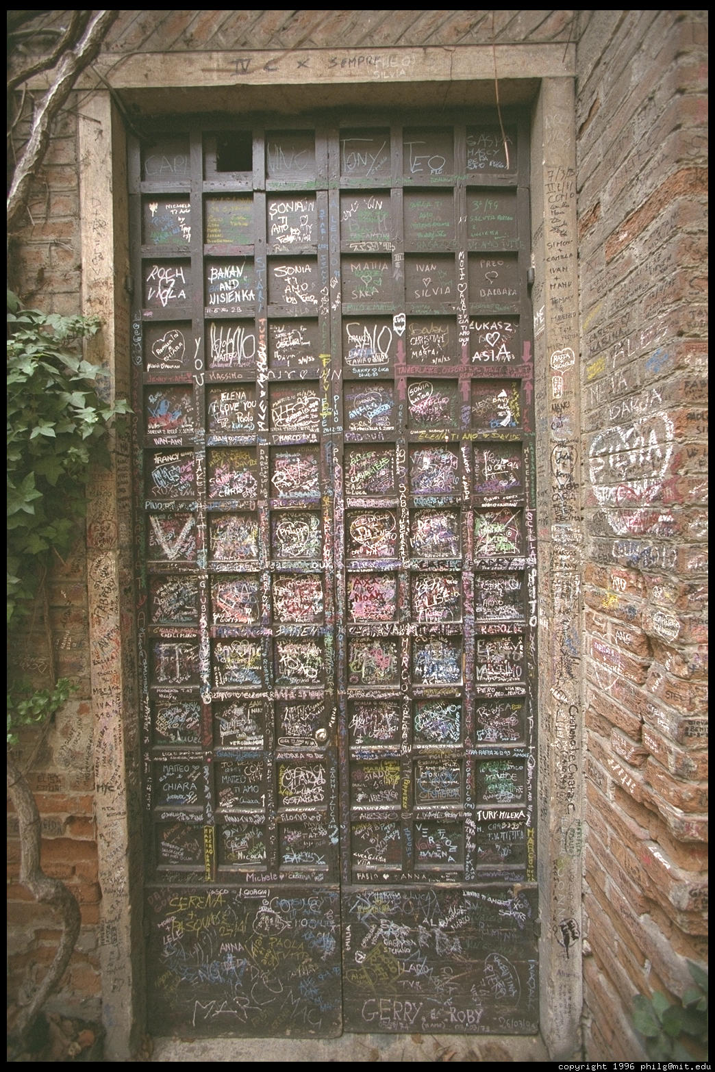 Lovers leave notes behind the statue of Shakespeare's Juliet, Verona.