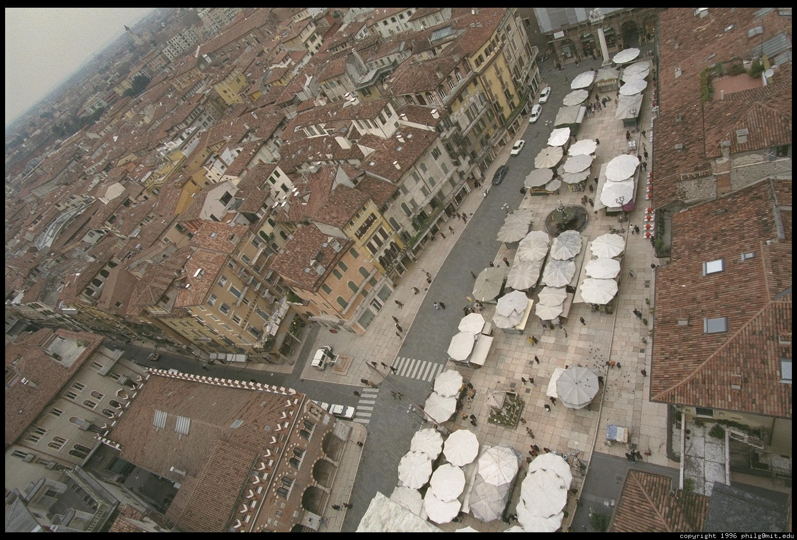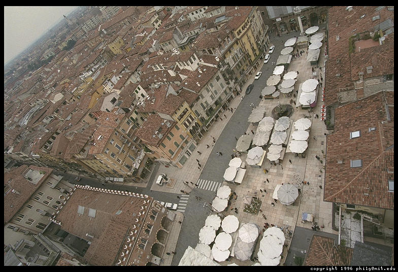 View of Verona's Piazza Erbe from the Torre dei Lamberti