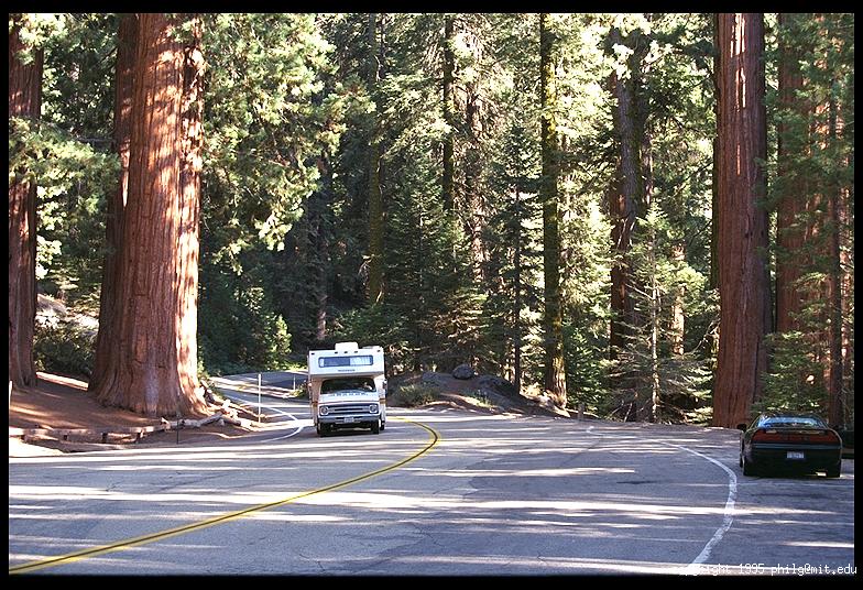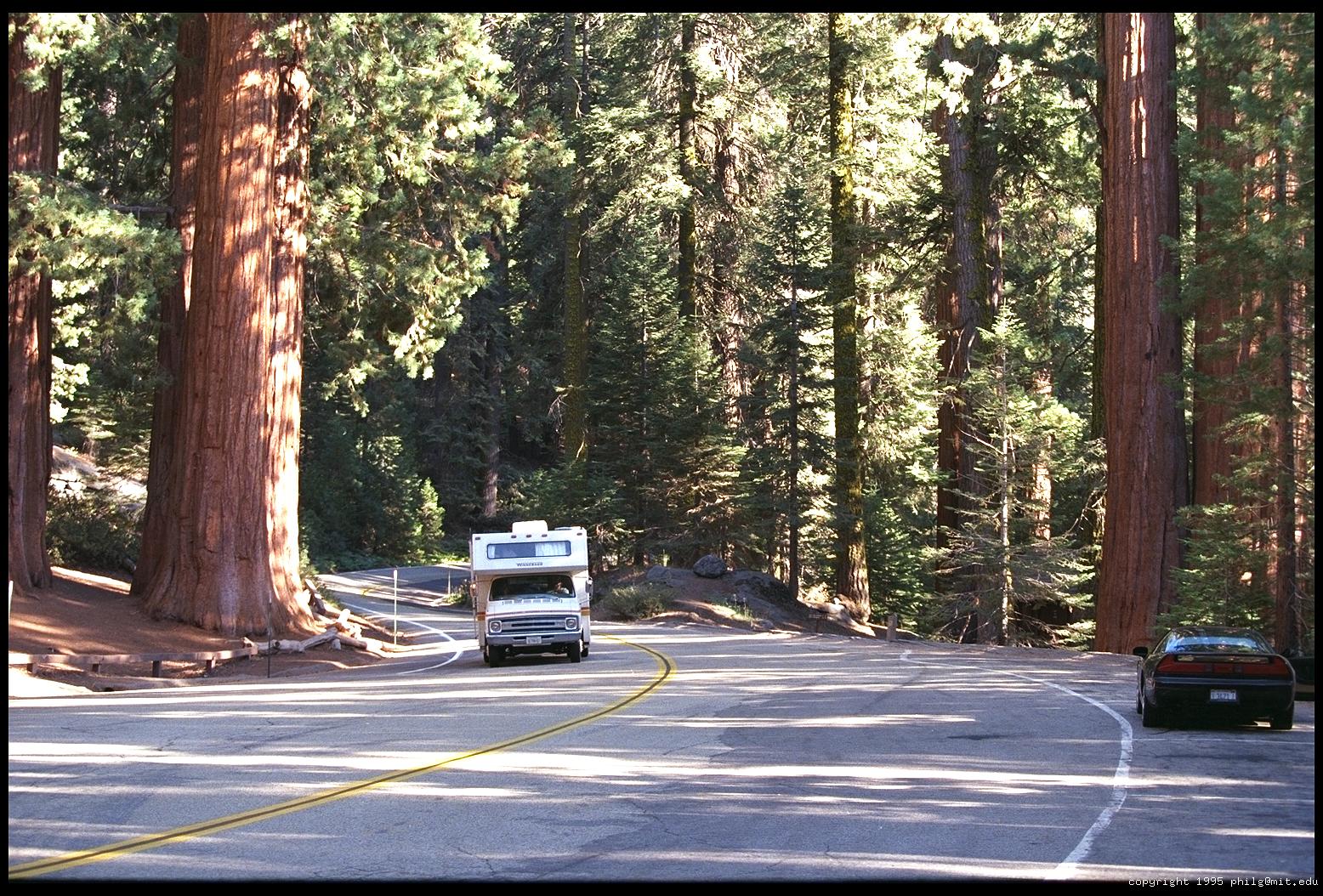Motorhome on the mountain roads of Sequoia National Park. California.