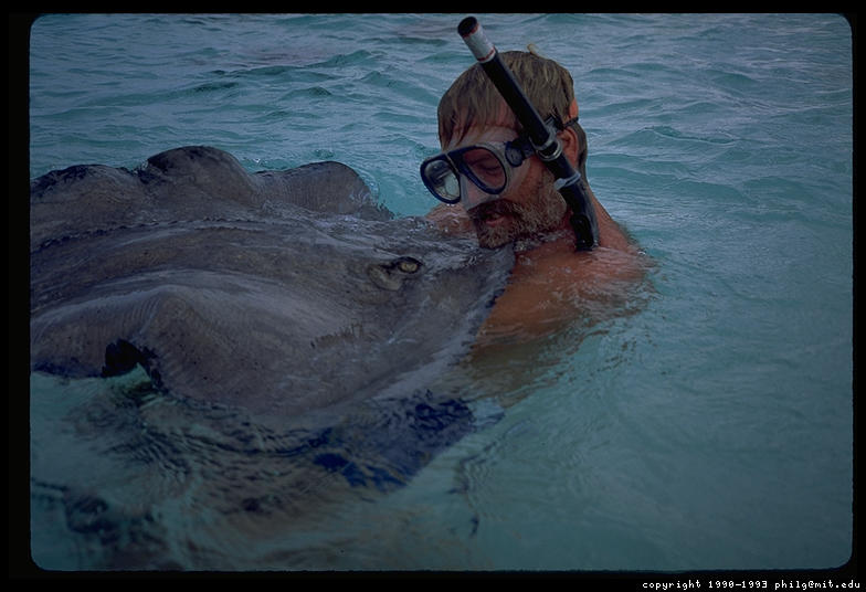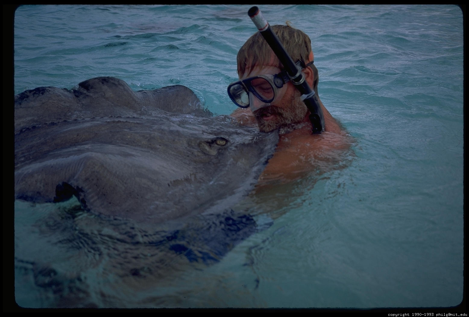 Professional stingray guy feeding stingray in Stingray City, Grand Cayman, Cayman Islands