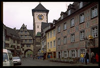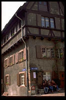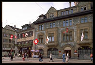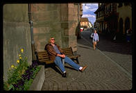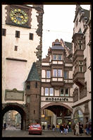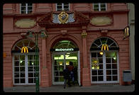 Interior of the famous church at Oxford University A shop in Oxford, England My friend Klaus's parents run this hotel, Steinasage, in the Black Forest (Bonndorf, tel (07703) 584, FAX 583) My friend Klaus's parents run this hotel, Steinasage, in the Black Forest (Bonndorf, tel (07703) 584, FAX 583) The Brandenburg Gate, Berlin The tour boat Vaterland cruises through the center of Berlin My friend John Klein, Ph.D. in math, an affirmative-action refugeeworking in Germany Synagogue in East Berlin, gradually being restored from the damage it suffered during Reichkristallnacht and then the war A wall in East Berlin circa 1993 still bears the scars of the Red Army Soviet memorial marking the spot where Berlin's 55,000 Jews were collected for deportation Soviet memorial to the victims of the Nazis, on the site of the old Jewish cemetery in Berlin (dug up by the Nazis) John stands alone where the tombstones of 12,000 Jews once were (the Nazis dug up the graves) John and Berlin's signature water pumps (you aren't supposed to drink the water but he did) A Trabbi next to a Berlin street named after the town where V2 rockets were made The television tower in Alexanderplatz represented the height of Communist technology The Neue Wache (New Watch), built as a guardhouse for the Kaiser, became Germany's unknown soldier monument after the First World War.  Hitler remade it slightly into a monument glorifying militarism and victorious Russians turned it into a monument to the victims of the Nazis.  Now the Germans are are turning it into a universalist monument. Frederick the Great rides in the middle of Unter den Linden, whose trees were cut down to facilitate Nazi parades Opernplatz, where the Nazis held their first book burning Soviet plaque commemorating the book burning The East German opera West Berlin's Soviet War Memorial West Berlin's Soviet War Memorial The Reichstag, sans dome Wannsee, where the Final Solution was planned Frederick the Great's Potsdam playground Voltaire's face on a monkey, proving that it is unwise to irritate a royal host such as Frederick the Great Entrance to Treptower Park, the Soviets' massive WWII memorial in East Berlin Mother Russia Translation:  The Germans attack (Treptower Park, Berlin) The Russians arm  (Treptower Park, Berlin) The Russians fight back (Treptower Park, Berlin) What little remains of the Berlin Wall Kreuzberg, home to Turks and Berlin's counterculture Kreuzberg, home to Turks and Berlin's counterculture Berlin crowds shopping on Saturday morning Berlin deadbeats hang out in front of the Kaiser Wilhelm church Schloss Charlottenburg, destroyed by British bombers but rebuilt as the Berlin nexus of German tourism One out of three buildings in Berlin was destroyed by British and American bombs View from my train going along the Elbe River south from Berlin to Prague Leona, the first Czech whom I met in Prague The Charles Bridge, Prague's ultimate hangout Prague Castle at sunset Prague Castle at sunset Inside the St. Nicholas Church (Prague) The Golden Lane, where Kafka lived for a summer (Prague) Catholic officials were hurled from these windows and either (1) sprouted wings and were saved by the Virgin Mary (according to the Church) or (2) landed in a dungheap (according to eyewitnesses).  Prague has been the scene of many defenestrations. Prague's cathedral The grave of a young woman killed in the Prague Spring A canal in Prague Prague's signature tourist clock, in the Old Town Square Prague's Old Town Square, where American and Canadian deadbeats hang out Plaque describing German actions in Prague's Old Town Square, a few days after the official end of the war Prague's Old Town Square The Jewish cemetery, a staple of Prague tourism The Pinkasova synagogue, whose walls were painted with the names of 77,297 Czech Jews killed by the Germans (rubbed out by the Communists and repainted in 1993) The Czech Republic is filled with technology that works and is built with taste, e.g., this subway station If you give this Bambino di Praga some jewels, you will allegedly be rewarded in this life