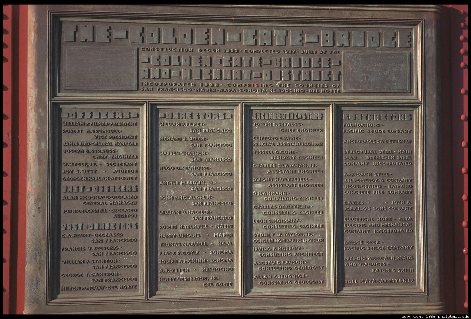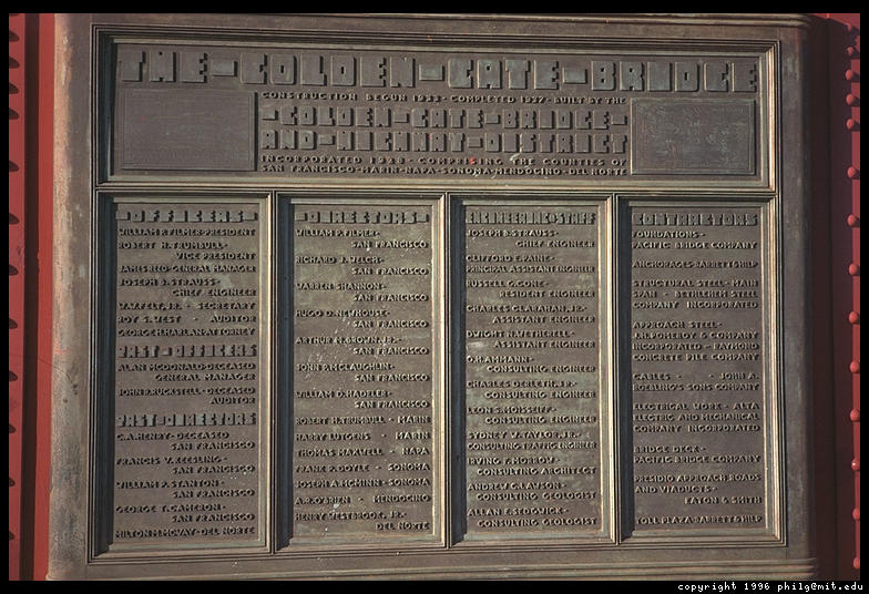 Plaque on the Golden Gate Bridge