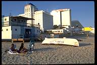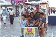 into the ocean and are crammed with tourist shops and rides.