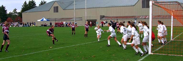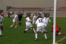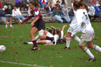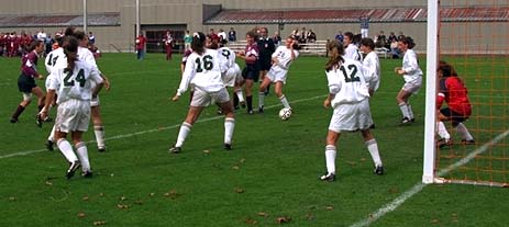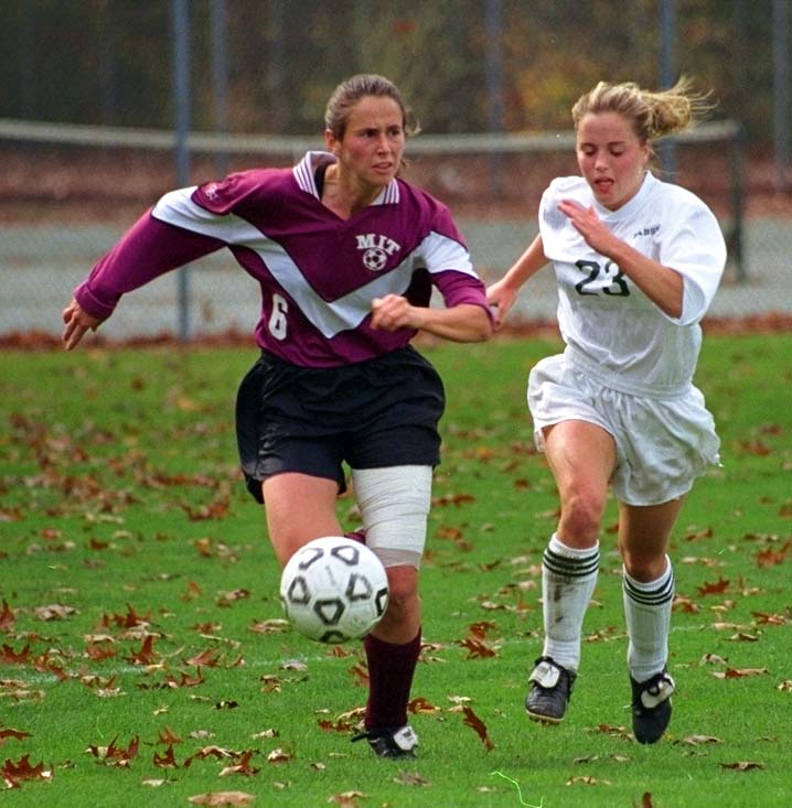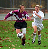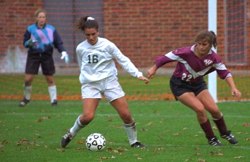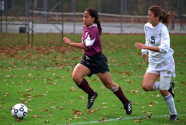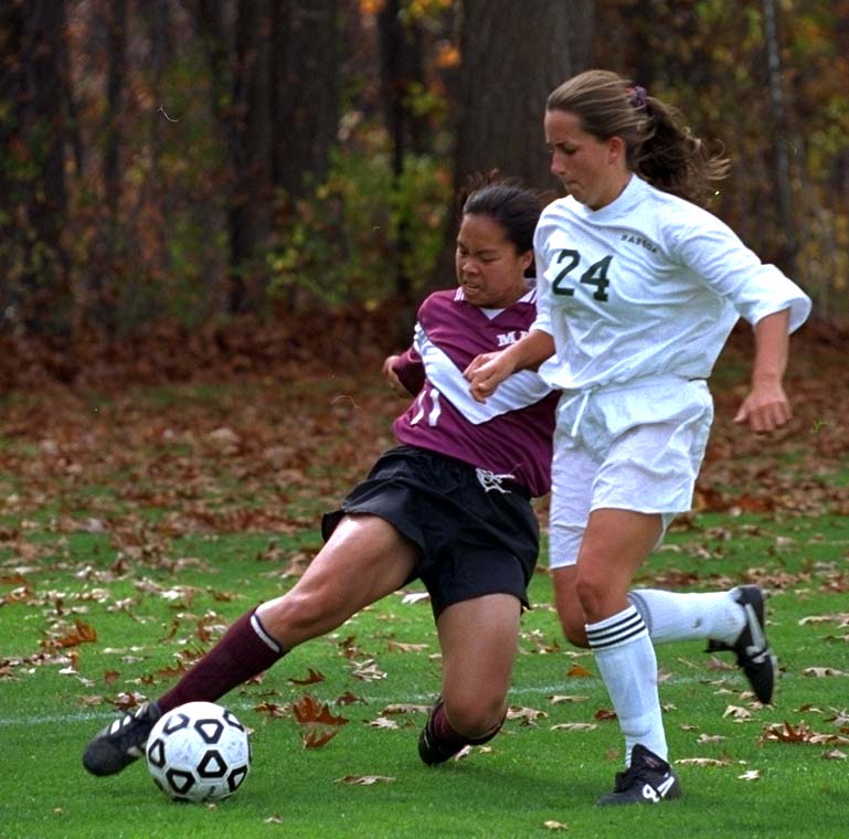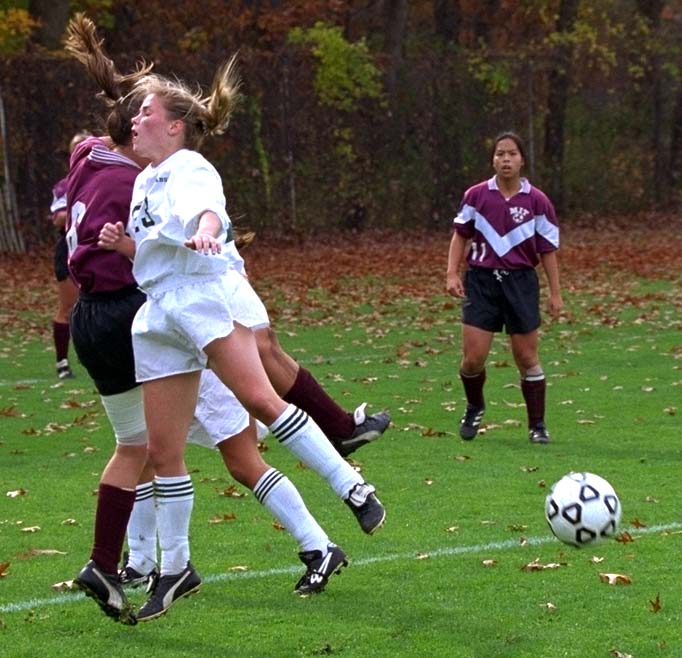 Emily Brown (#22) dances with her opponent, Melissa Newman (#16).