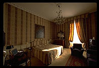 like a fairy tale with rich wall fabric, etchings, and antique furniture (it was