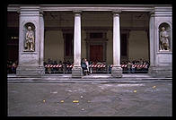 Although there are two copies in public squares in Florence, everyone comes here to pay 12,000 lire to look at Michelangelo's original David. It really is magnificently displayed in the Accademia, which was started as an art school in 1563, allegedly the first in Europe. The collection displayed today was started in 1784 to provide examples for students. If the huge room on the second floor full of huge altarpieces doesn't convert you to Christianity, then you are probably beyond hope. It would probably be best to bone up on your New Testament before coming here if you want to understand the works, though the museum is sprouting superb explanatory signs, in Italian and English, in front of every item. Considering that most museums are sitting on $millions in property and often $billions in art treasures, you have to wonder why hardly any have hired a few graduate students to translate their explanations.
