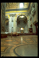 Michelangelo designed the dome, which is relatively easy to climb these days because an elevator gets you halfway to the top. Michelangelo also contributed the Pietà, a statue of Mary holding the dead Jesus completed in 1499, when Michelangelo was 25. An Australian tourist attacked Jesus's foot with a hammer in 1972 and the statue now sits behind glass. You might do better to examine the replica in the Pinocoteca of the Vatican Museums.