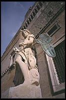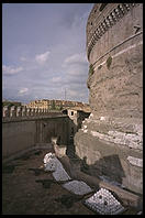 Sergio only had to go to the Post Office to stock up on stamps for his shop, but he dropped me off right at the door of the old tomb of the Emperor Hadrian. It was completed in 139 AD, incorporated into the Aurelian Wall in 271 AD, visited by the Archangel Michael in 590 AD (hence the current name), connected to the Vatican in 1277 via a secret escape route for the pope in times of trouble, used as a military barracks and prison in 1870, and served as a launching pad for Tosca in Puccini's Tosca. Now it is a tourist attaction that gets three stars in the Michelin guide. I'm not really sure why because there isn't so much to see in the huge fortress, but the view from the top is worth the price of admission and the climb. You can enjoy the same view and a snack from the tables at the bar, about three quarters of the way to the top.
