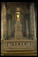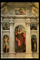 The church in the square contains Palma il Vecchio's polyptch St. Barbara and Saints (c. 1510; at right). But I found the pigeons in the impromptu fountain at left more interesting. |