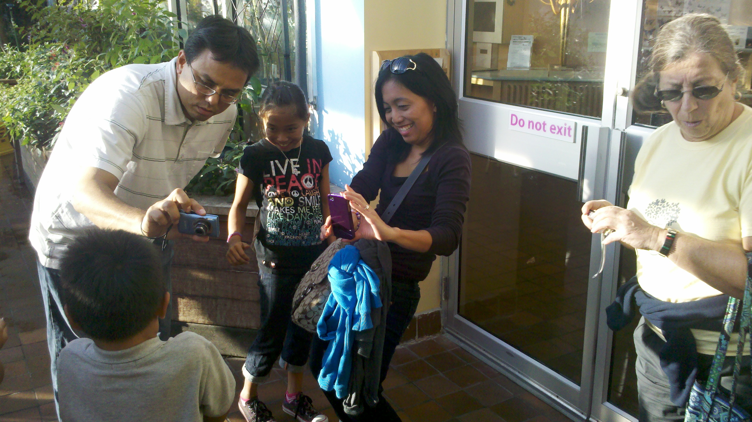 Indoors, without any warning, the camera will select a slow shutter speed, e.g., 1/15th of a second, that will result in blurry handheld photos (image at left below). By bracing one's body against a column or door frame, it is possible to capture acceptable photos at this shutter speed (below right).